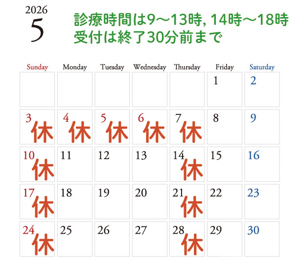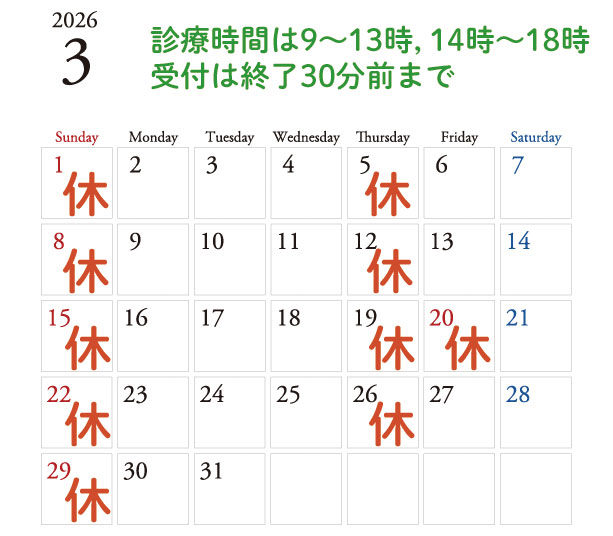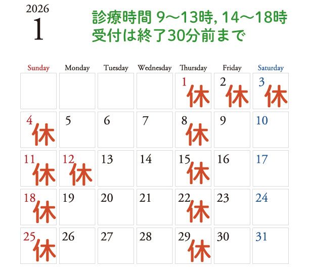 診療時間/ 月・火・水・金 9時~13時、14時~18時